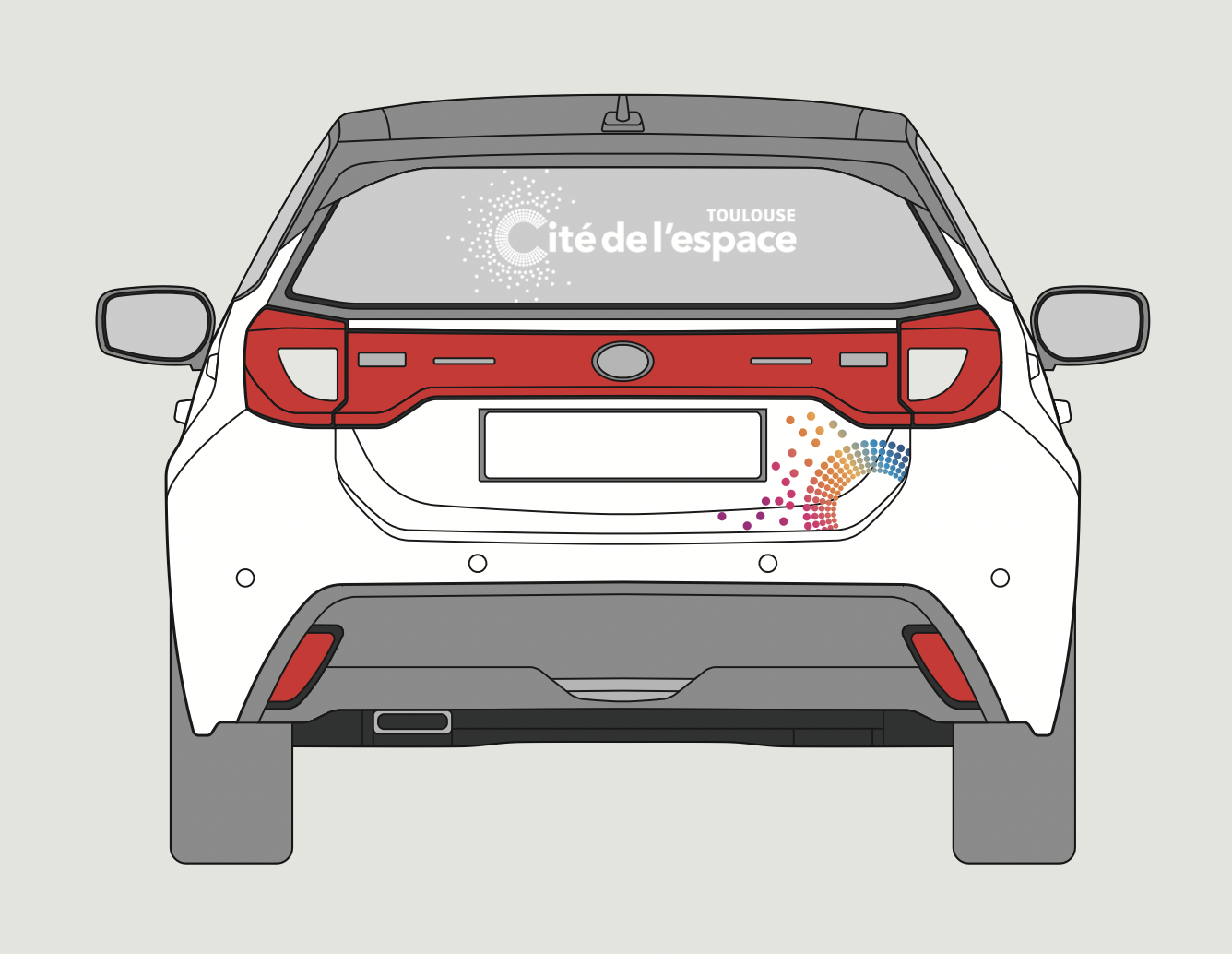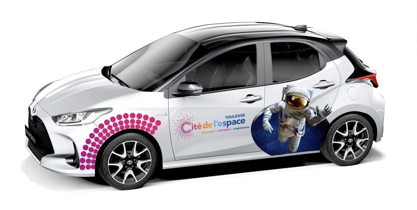 La cité de l'espace à souhaité personnaliser leur voiture pour mettre en valeur leur marque. Ils profitent de cette technique pour enrichir leurs publicité.