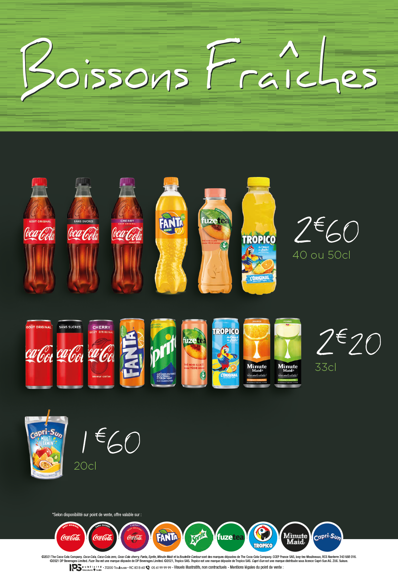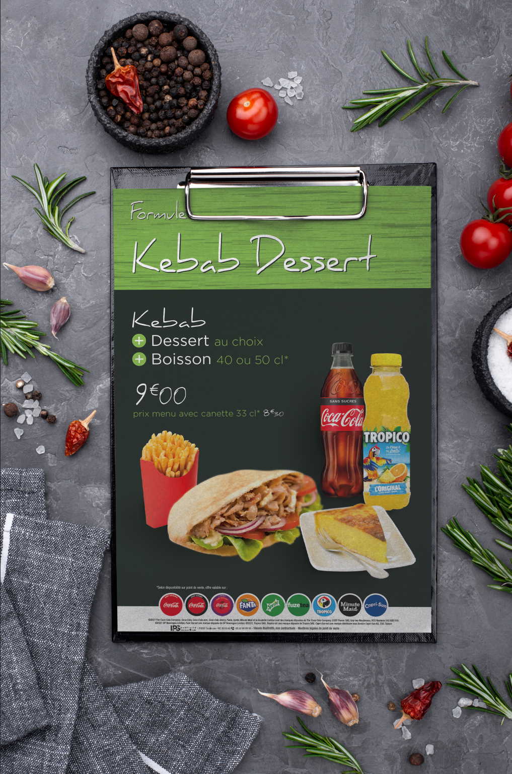 L'océan à demandé 5 panneaux avec les menus, puis un panneau qui présente les boissons fraîches que possèdent le restaurant.